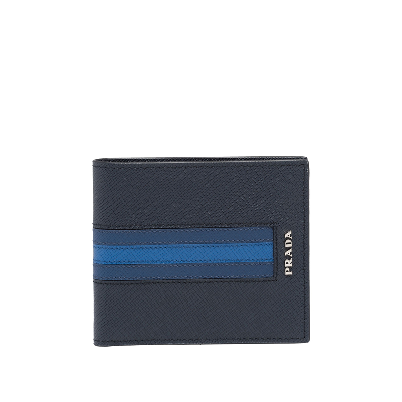2MO513 Prada普拉達(dá) Saffiano皮革 配對比色嵌花 雙折短錢夾 海藍(lán)色