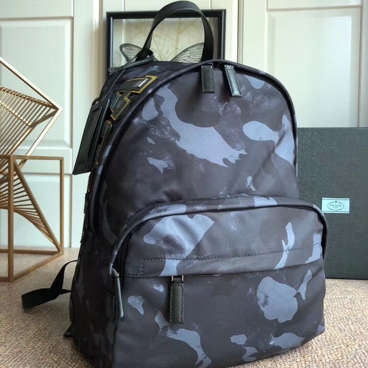 • 2VG066 Prada背包 迷彩印花 織物面料 普拉達雙肩包 灰藍色