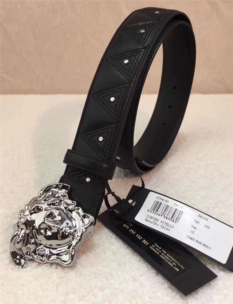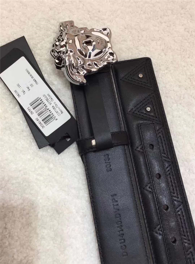 • 范思哲Versce 2017新款皮帶 美杜莎扣頭皮帶 男士腰帶牛皮 黑色銀扣