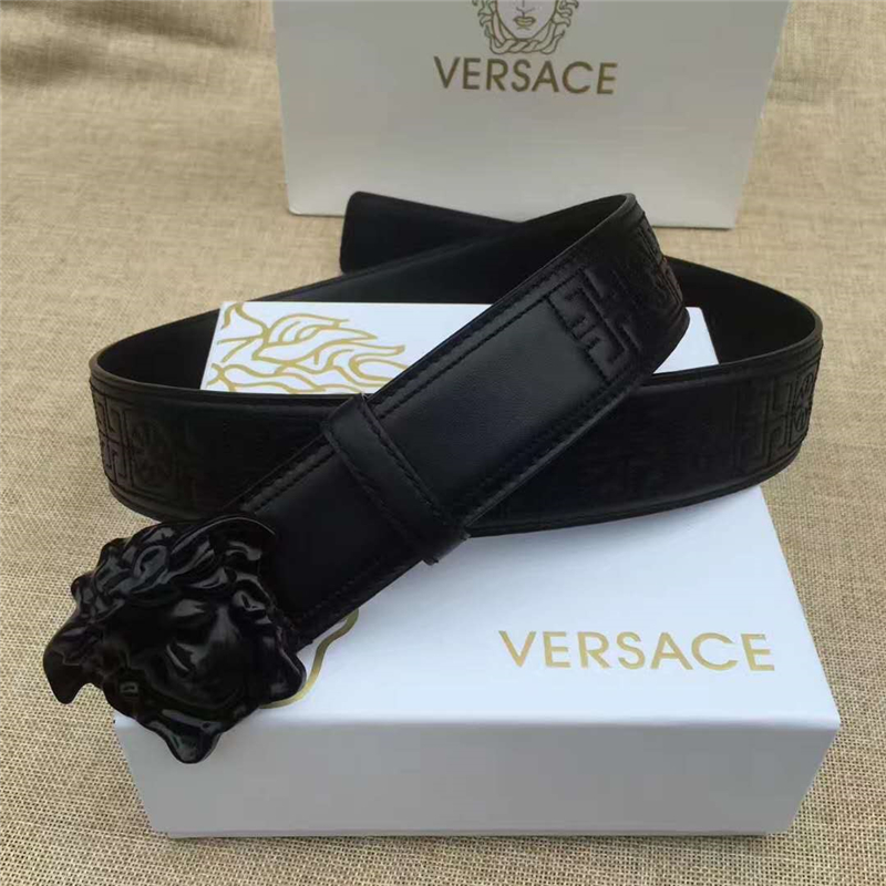 Versace 范思哲 2017新款皮帶 美杜莎扣頭 凹印圖案 男士腰帶 黑色