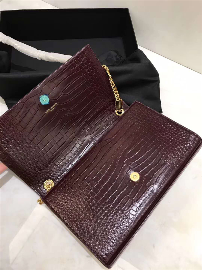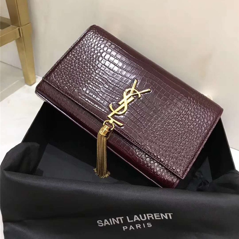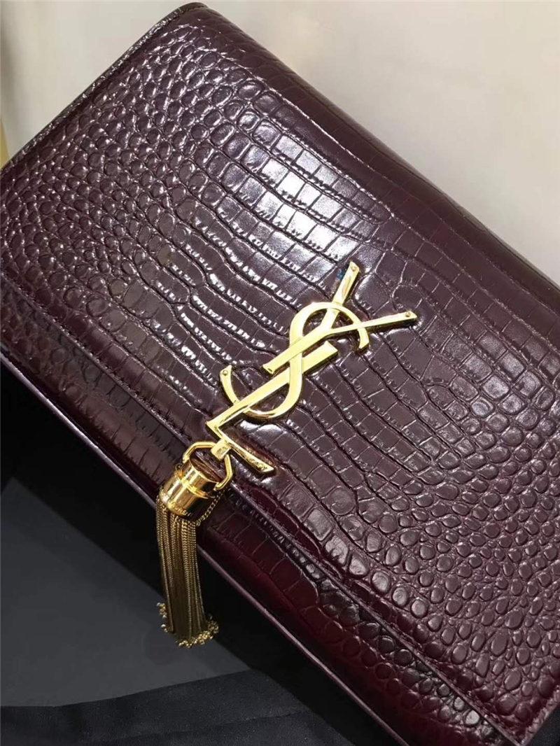 326076 YSL圣羅蘭 專柜最新 細(xì)鱷魚紋 流蘇包 棗紅金鏈