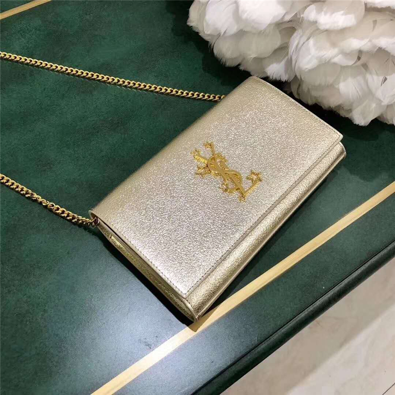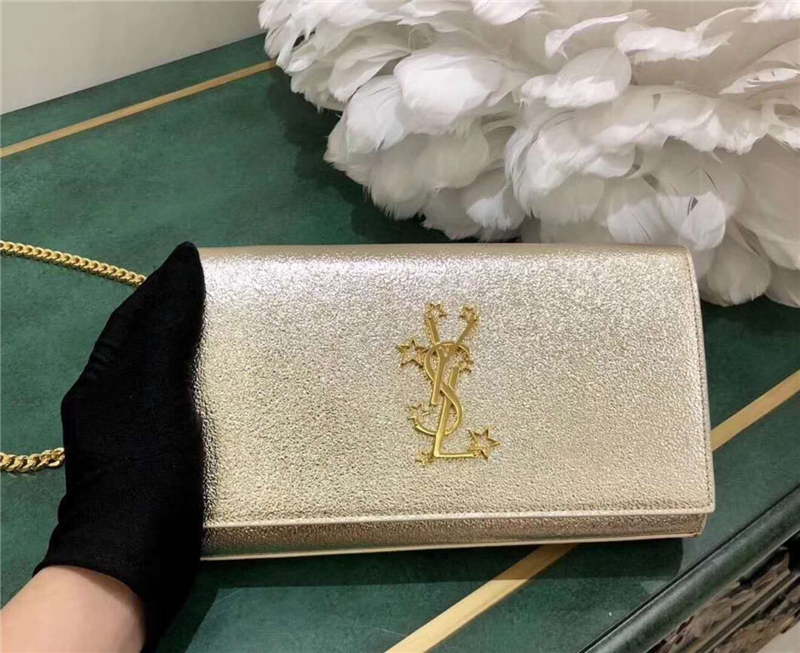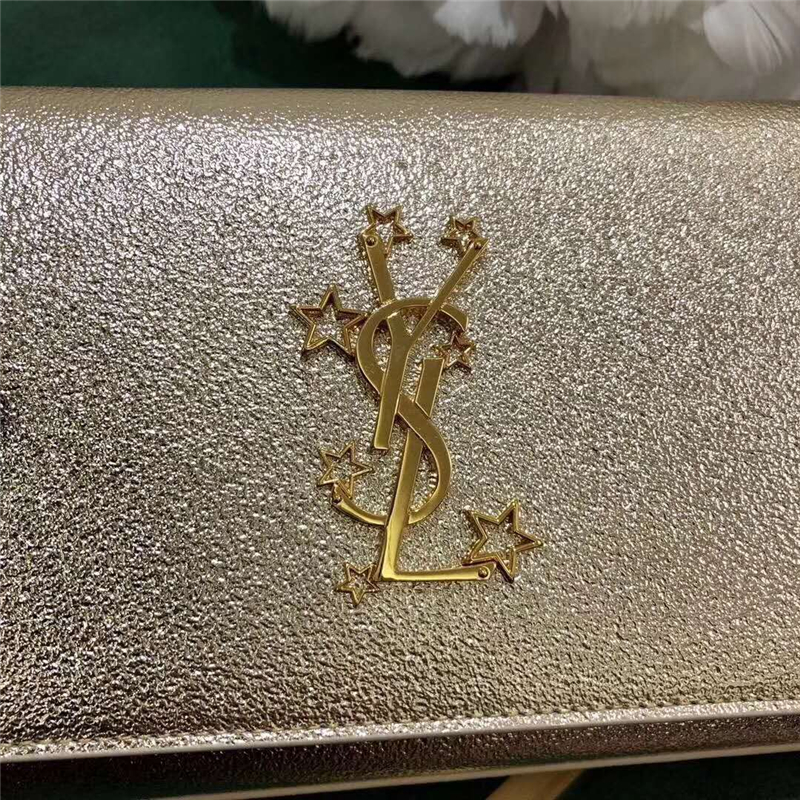 YSL圣羅蘭 最新材質(zhì) 鉆石紋 金屬皮 星扣 鏈條包 金色