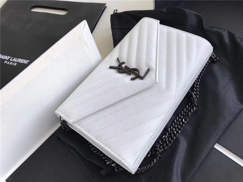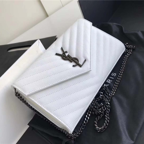 - 377828 YSL 進(jìn)口魚子醬皮 圣羅蘭 真皮鏈?zhǔn)狡A 白色黑飾