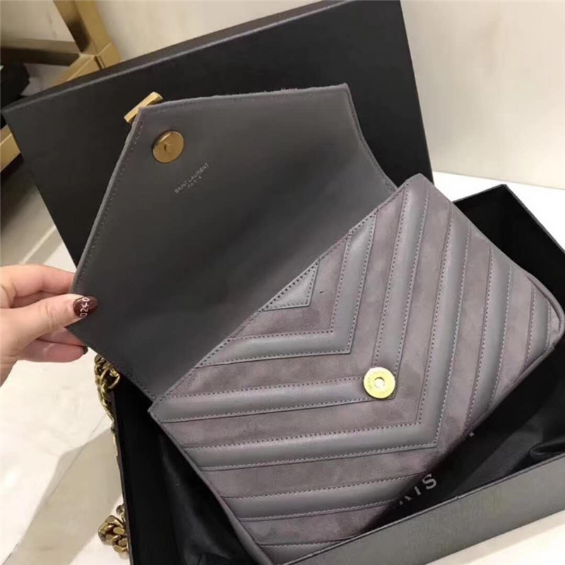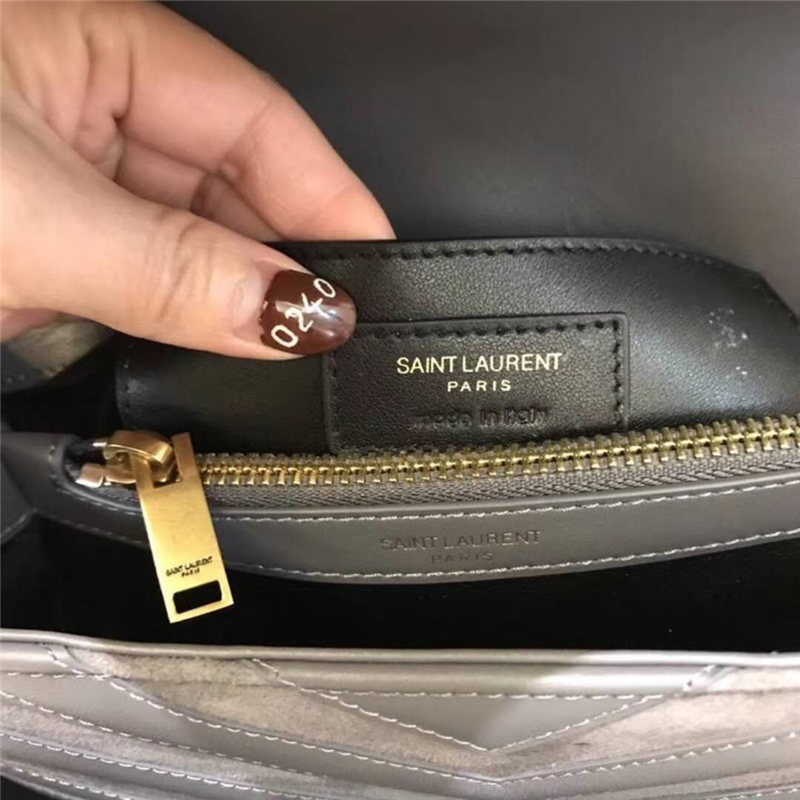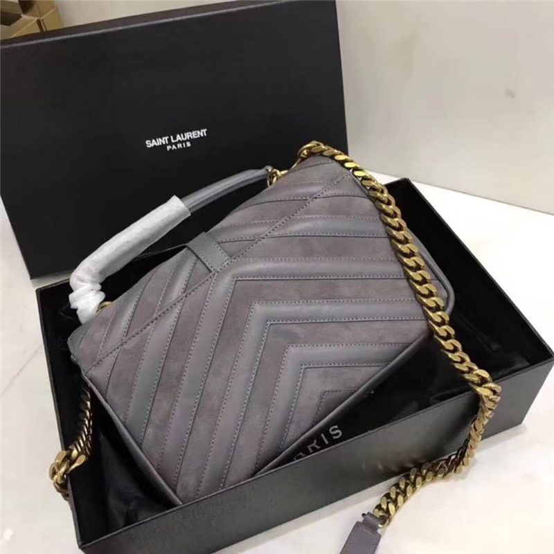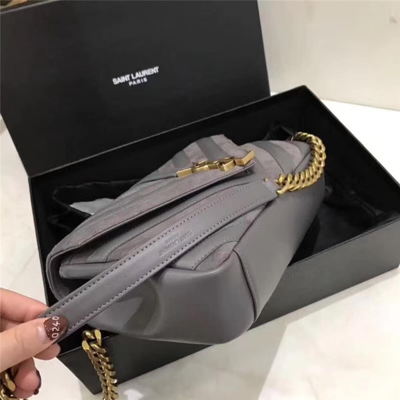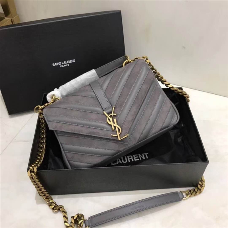 • 392737 YSL圣羅蘭 麂皮拼羊皮 V紋 中號 鏈條郵差包 灰色