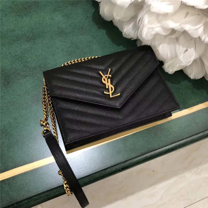 圣羅蘭 SLP女包 進口魚子醬皮 圣羅蘭鏈條包 2017官方同款 黑色