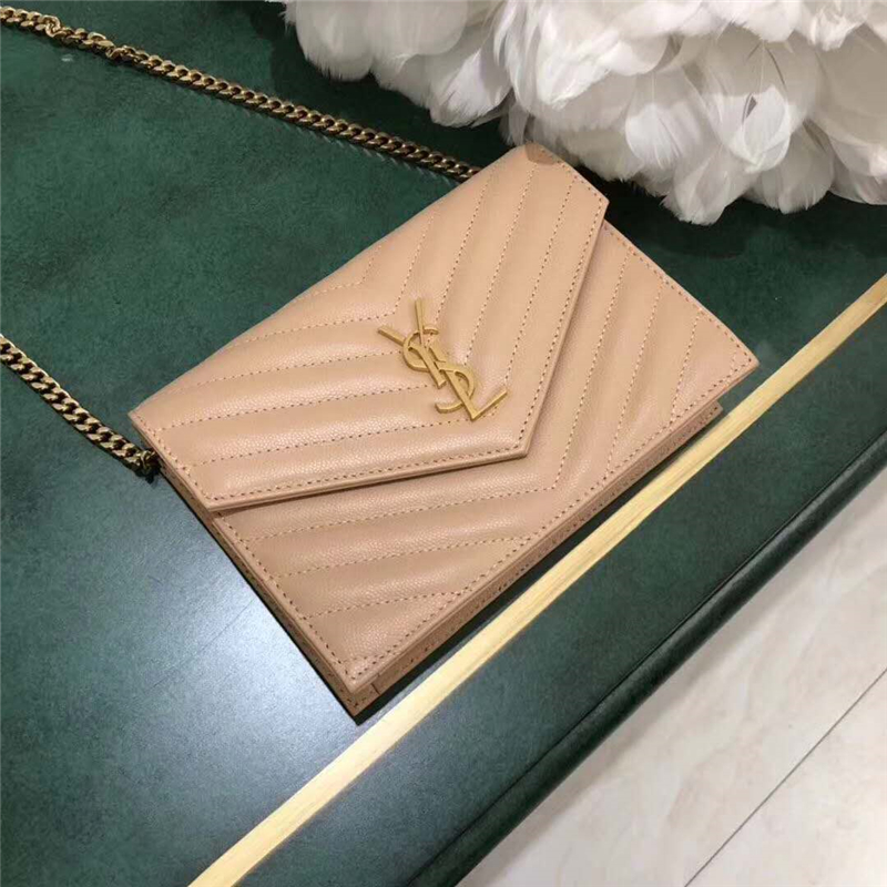 圣羅蘭 SLP女包 進口魚子醬皮 圣羅蘭鏈條包 2017官方同款 裸粉