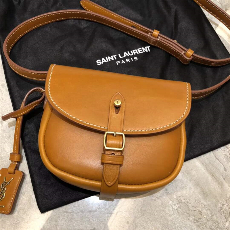 • YSL女包 進口樹膏皮 圣羅蘭馬鞍包 YSL單肩斜挎包 淺棕色