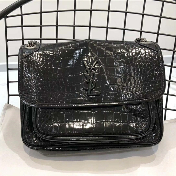 • YSL女包 Niki 漆皮鱷魚紋 圣羅蘭鏈條包 YSL單肩斜挎包 黑色