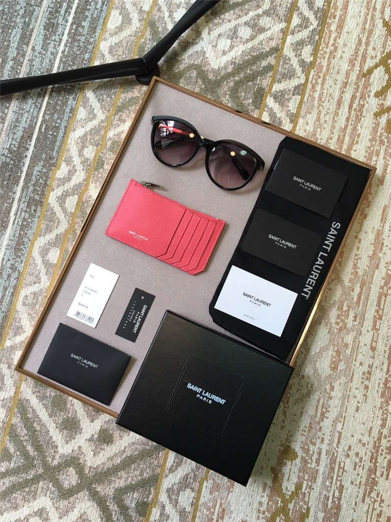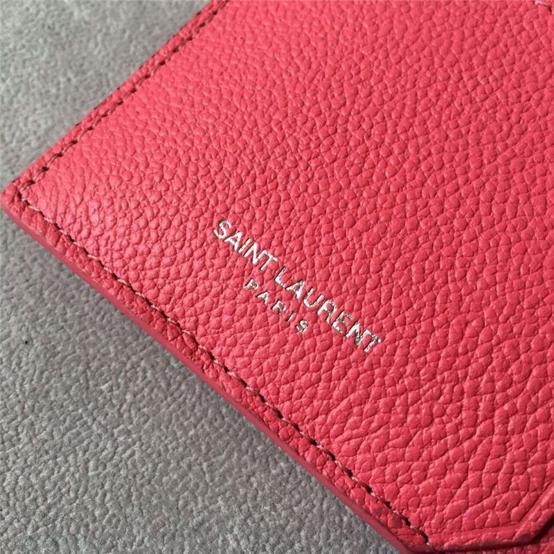 • 458589 YSL卡夾 SAINT LAURENT 細(xì)粒紋理真皮 圣羅蘭零錢包 西瓜紅
