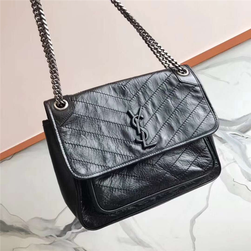 • 498894 YSL圣羅蘭 NIKI復古 舊油蠟牛皮 褶皺 鏈條包 黑色