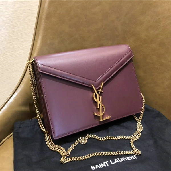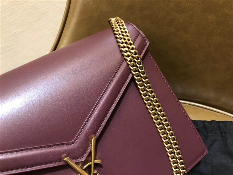 - 532750 YSL女袋 CASSANDRA 中號(hào) 字母標(biāo)志 拉頭光面 圣羅蘭信封皮包 葡萄紫