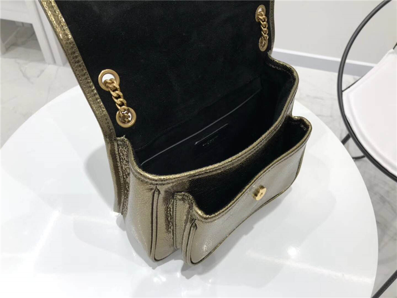 • 533039 YSL女包 NIKI系列 真皮鯊格紋 小號 圣羅蘭翻蓋包 YSL鏈條肩包 青銅金