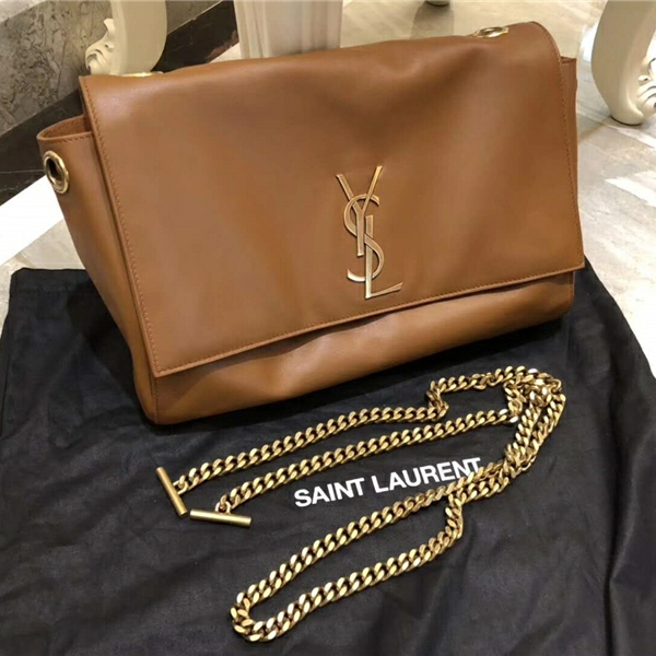 • 553804 YSL女包 絨面拼皮 兩面可翻 YSL鏈條包 柔軟皮 圣羅蘭單肩斜挎包 棕色