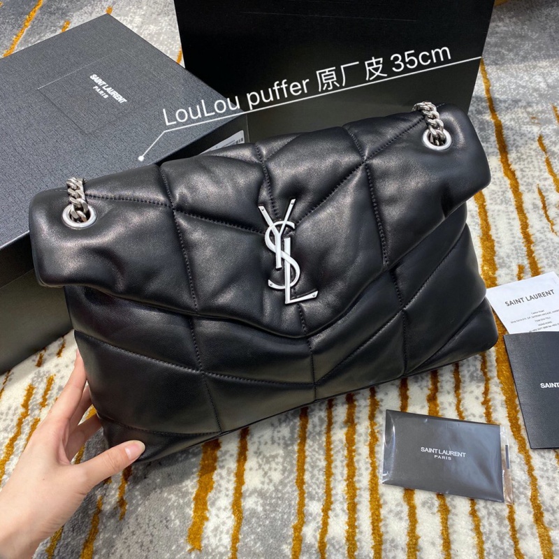 • 577475 YSL圣羅蘭LOULOU PUFFER中號(hào)絎縫小羊皮手袋 黑色銀扣