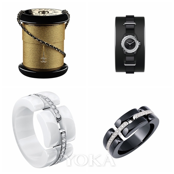 白百何身著Chanel 2016秋冬高級成衣系列連衣裙搭配Chanel金色線軸造型晚宴包,佩戴Chanel J12·XS黑色手鐲款小號以及Ultra系列白18K金鑲鉆黑、白陶瓷戒指,又優雅又俏皮。