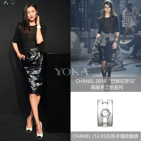 劉雯身著CHANEL 2016羅馬在巴黎高級手工坊系列服裝,佩戴CHANEL J12 XS白色手鐲款腕表。