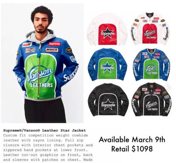 T0P 3、Supreme x Vanson 機車皮外套