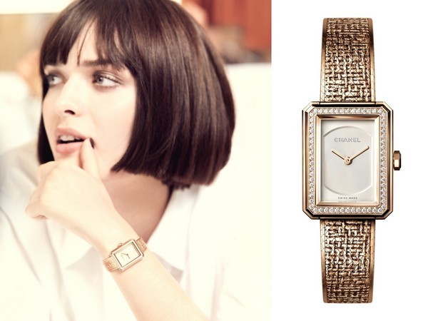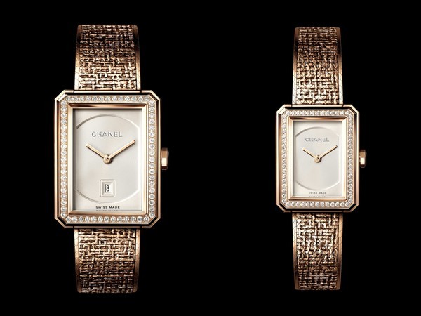 2015年,Chanel(香奈兒)以首款女性腕表PREMIERE為靈感設計出BOY.FRIEND系列腕表,凸顯女人剛柔并濟的中性神秘氣質;2016年再將經典的斜紋軟呢壓印在表帶上,更加摩登時尚!在2017年的巴賽爾鐘表展(Basel)上,又換上了「米色金」新色,華麗的貴氣姿態令人屏息!