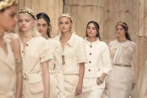 卡爾·拉格斐以2017/18早春度假系列創新詮釋古典定義。凸花蕾絲、真絲、縐綢與jersey針織面料呈現純凈耀眼的白色,演繹古希臘建筑與陶器之美。