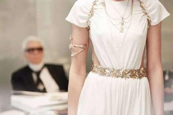 卡爾·拉格斐匠心獨運,以樹枝、月桂葉與橄欖葉為靈感,設計腰帶、銬式手鐲與手鏈,來凸顯本系列的皺褶設計。