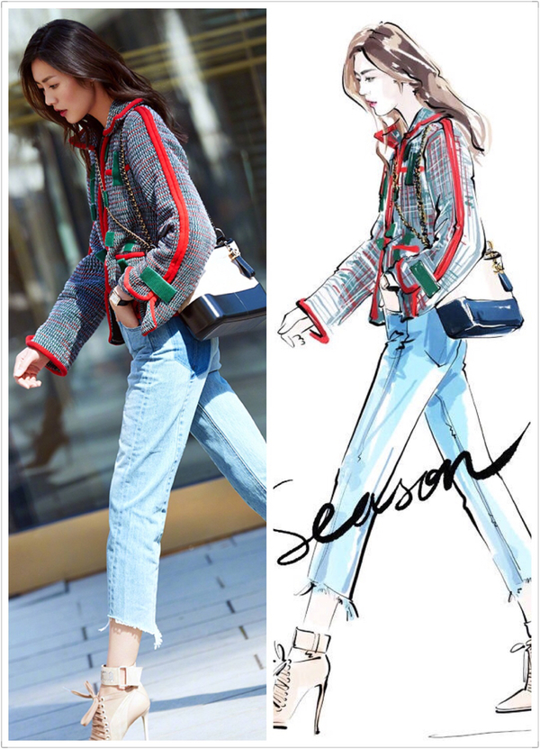 劉雯將這款春夏Gabrielle bag 流浪包演繹得淋漓盡致