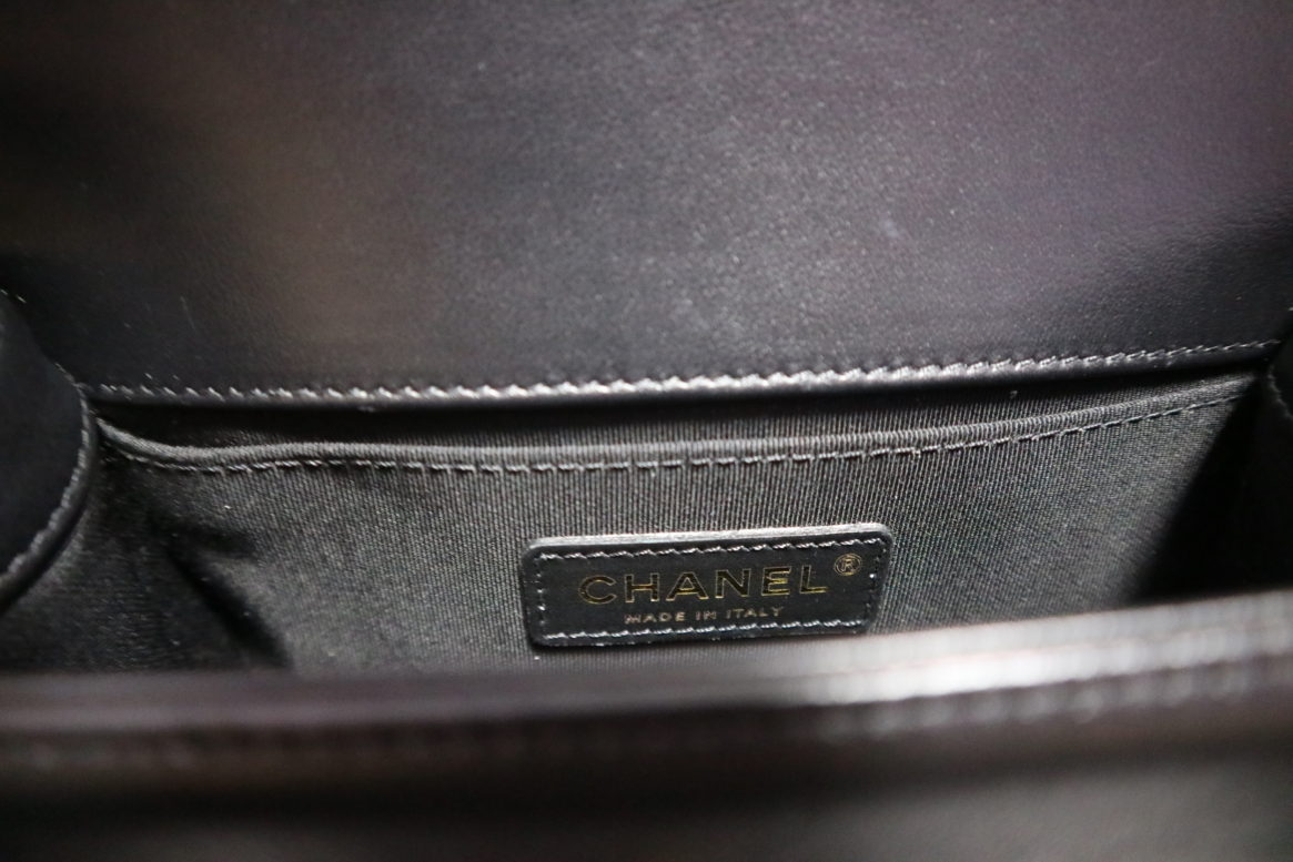 小號Boy Chanel口蓋包,黑色小牛皮與金色金屬,12 × 20 × 7 cm – HK$33,500