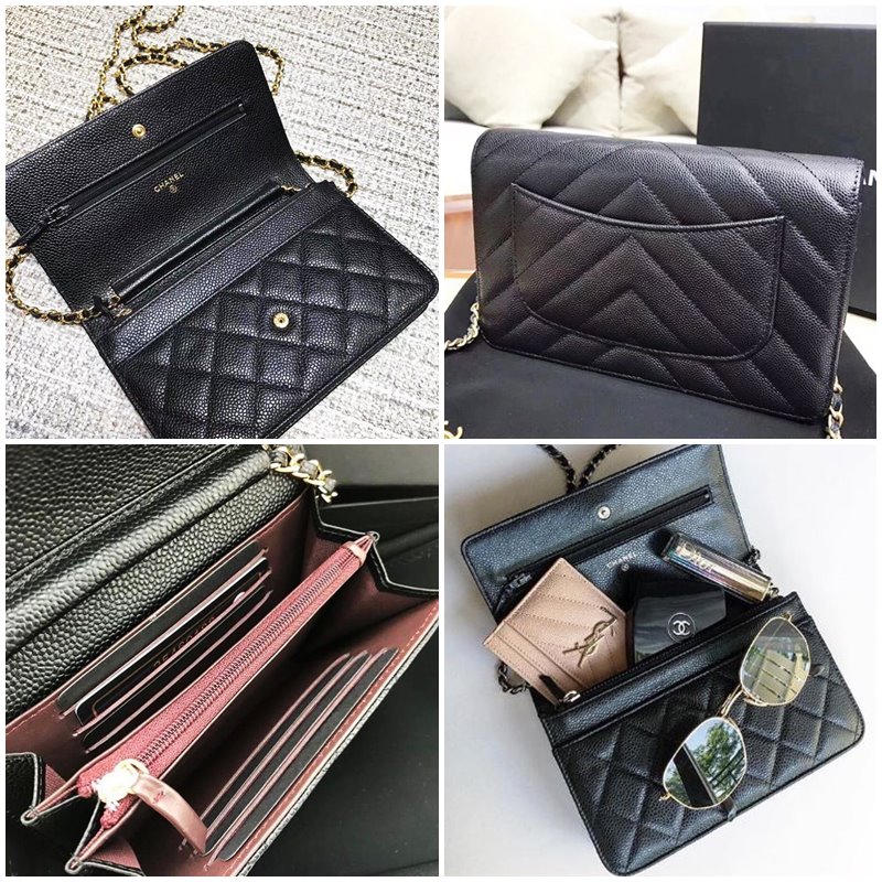 看似扁小的WOC包,本身就是個十分大型的長夾,內部有開放式及拉鏈式夾層,雖然空間設計簡潔,但許多卡夾層、暗袋等,可以很好的收納卡片、零錢與隨身小物,完全取代又結合皮夾及包包兩者,實用性非常之高!而這款包包的材質有荔枝牛皮、小羊皮等不同選擇,也推出各種不同設計的包面花樣,如果小資女孩想努力添購人生中第一款Chanel包,那它絕對是妳的最佳首選!