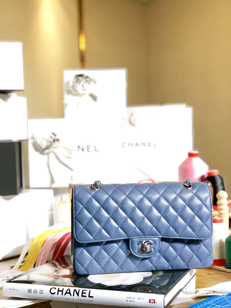 很多人分不清2.55和classic Flap(簡稱CF),因為它們都是菱格紋,外形相似度很高。其實,這款被叫做經典款的Classic Flap的面世足足比2.55晚了近三十年。1983年,50歲的Karl Lagerfeld執掌Chanel之后,將2.55進行改良,把低調的方扣變成雙C logo。改良版Chanel 2.55,就是classic flap。有人說這是為了順應當時的拜金氣氛用雙C logo彰顯身份,也有人說是對Coco Chanel的致敬。CF經典款的肩背鏈條也變成了"皮串鏈",金屬鏈里面穿著皮繩。
