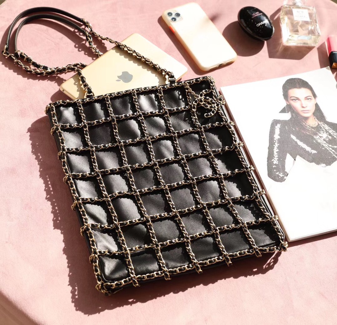 Chanel2020早春度假系列羊皮網格鏈條購物袋正品對比!
