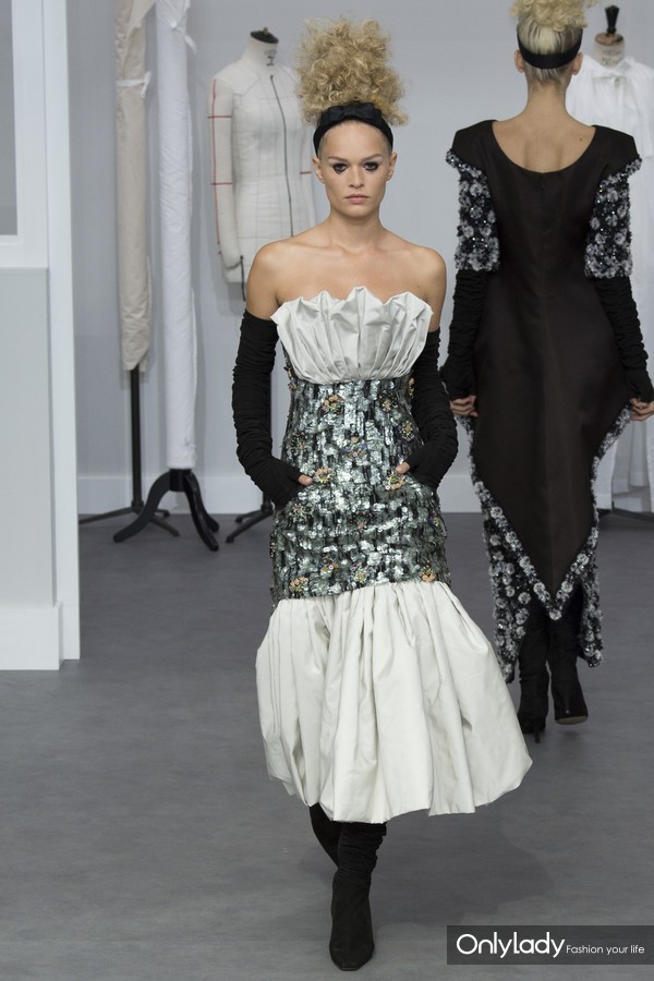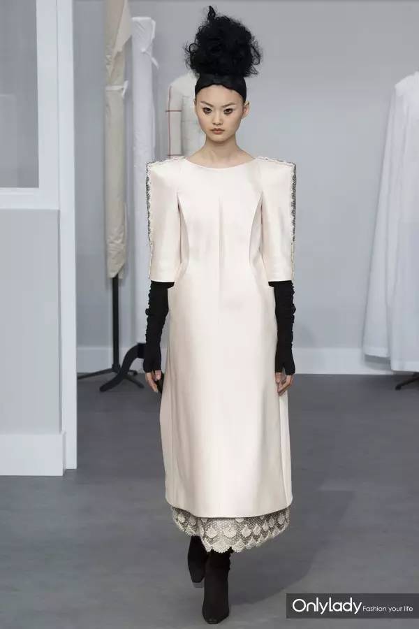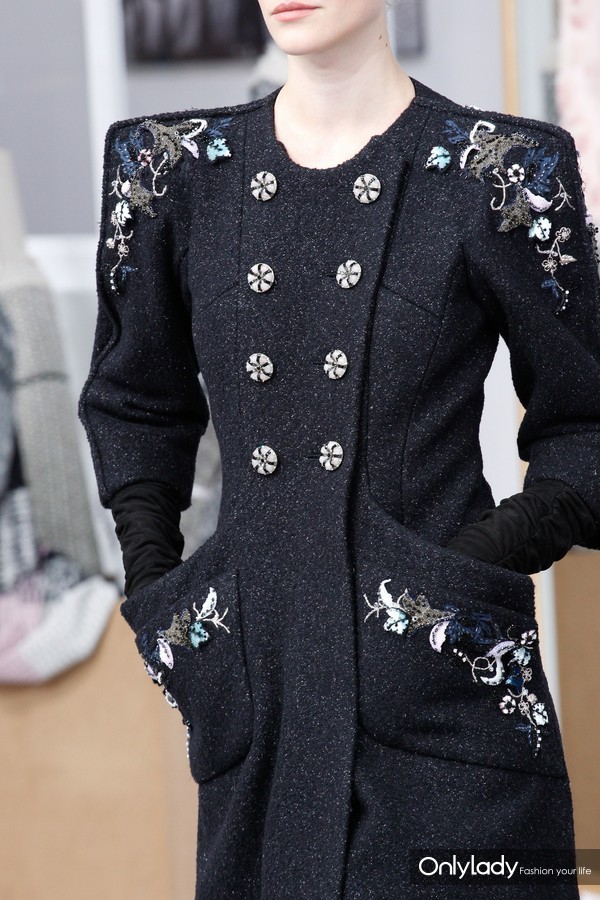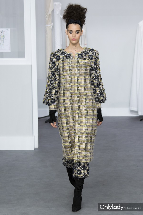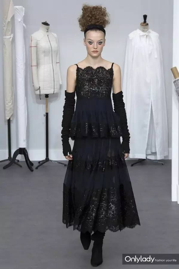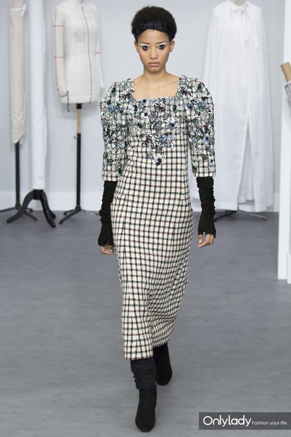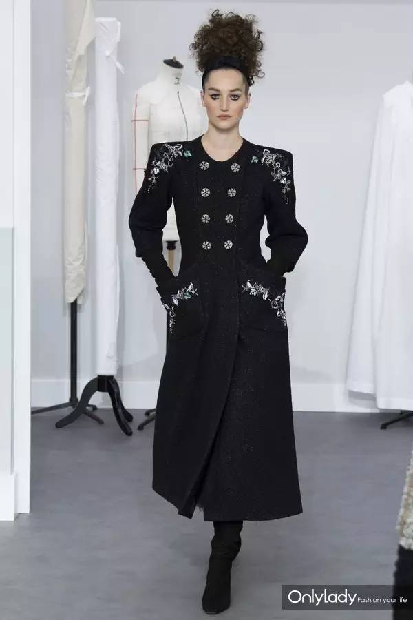 本次秀場(chǎng)變手工坊的概念可謂用心良苦,老佛爺意圖將成衣的制作流程全部公開(kāi),讓觀者全方位體驗(yàn)Chanel華服的誕生過(guò)程,從而向?qū)W⑶趭^的手工藝人致敬。至于造型,本次高定系列的一大亮點(diǎn)是斜紋軟呢套裝,在日裝的角色中具有舉足輕重的地位。