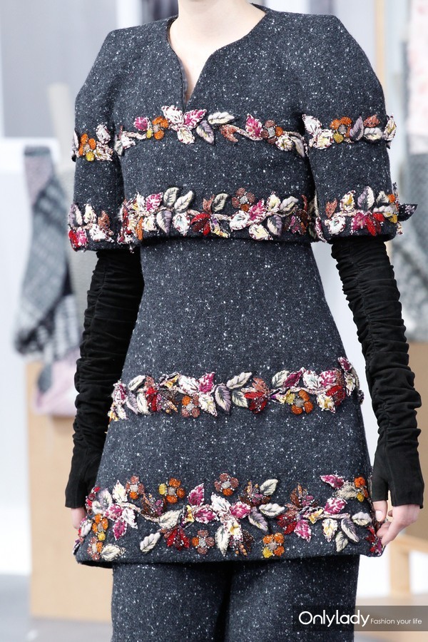 Coco Chanel女士說(shuō):優(yōu)雅來(lái)自行動(dòng)自如。這些斜紋軟呢的套裝剪裁立體得當(dāng),在保留衣服日常性的同時(shí),衣服上點(diǎn)綴的花紋和線(xiàn)條突出了女性的優(yōu)雅與精致。