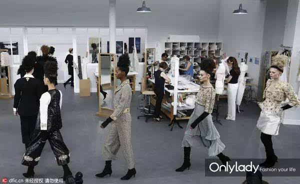 大秀正式開(kāi)始,Chanel 2016秋冬高級(jí)定制服裝系列被模特們完美呈現(xiàn),觀眾在欣賞華服的同時(shí)還能近距離同步看到手工藝人們精湛熟練的制作過(guò)程。