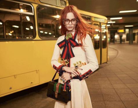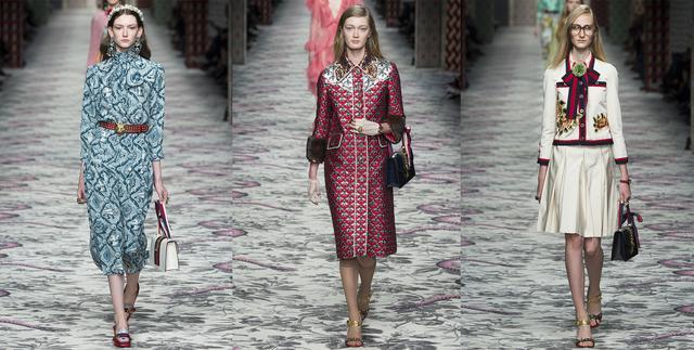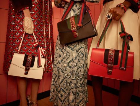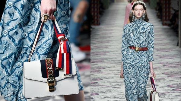 Sylvie真皮肩背包首次亮相于Gucci 2016春夏成衣秀