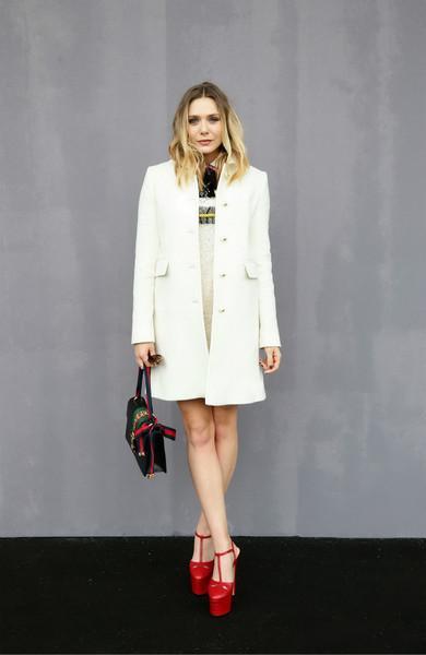 Elizabeth Olsen搭配黑色Sylvie系列手袋出席Gucci 2016秋冬女裝秀