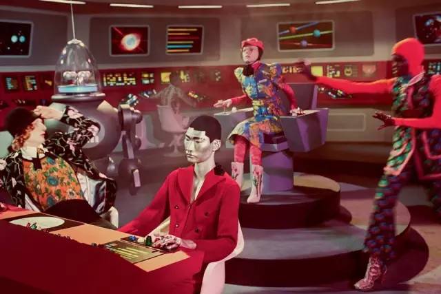 Alessandro Michele受到了20世紀(jì)50年代和60年代的科幻電影的啟發(fā),聯(lián)手?jǐn)z影師Glen Luchford復(fù)刻了幾個(gè)經(jīng)典的科幻電影場(chǎng)景。從著名的星際迷航,到恐怖電影黑湖妖譚,。人形、異形、機(jī)器人、地球、甚至恐龍的混合陣容 混合了色彩豐富和裝飾性的收藏品,創(chuàng)造出豐富的想象和幻想。