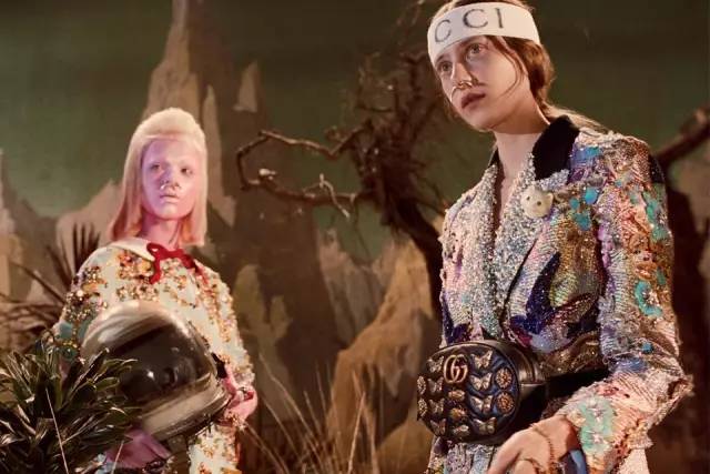 7月25日,Gucci正式發(fā)布了2017秋冬廣告大片《Gucci and Beyond》。此前視頻中出現(xiàn)的外星人,身著Gucci秋冬系列服裝,置身于科幻感十足的迷離外太空,超現(xiàn)實(shí)主義、迷幻的外層空間景觀和前衛(wèi)的復(fù)古宇宙飛船內(nèi)部創(chuàng)造了狂野的環(huán)境營(yíng)造了一種神秘氛圍。