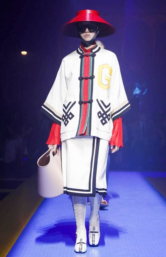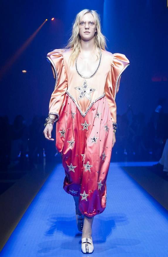 在本季的成衣中女模特頭上的飛碟造型的帽子,像是對于這個主題的呼應。擺脫于持續性與標準化帶來的單調,學著詩意地活出自己的精彩,就是本季GUCCI教會我們的。