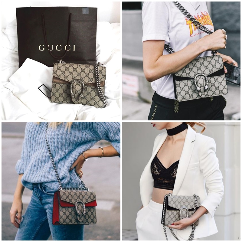 這款包就是網上熱烈討論、俗稱的「酒神包」,也幾乎是每位時尚人士都擁有的GUCCI包款,它方正、帶女人韻味的包型,搭配獨特的雙虎頭扣及粗鏈條,呈顯出復古、低調華麗的設計風格,真的非常美麗又迷人~