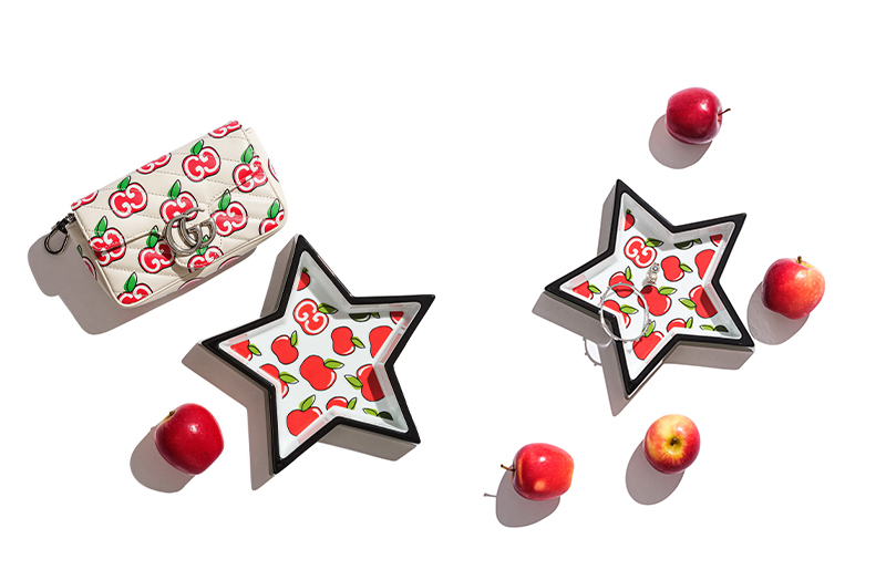 Gucci 介紹了 2020 七夕情人節特別系列。系列主打雙 G 蘋果圖案,這一紋樣最早出現在品牌 2020 早春系列里,這次用在七夕特別系列中,是因為蘋果在東西方傳說里都常常和愛情聯系在一起,或被視為帶有魔力的存在。比如在古希臘傳說里,眾神之母赫拉在婚禮上收到了大地女神蓋亞贈送的蘋果樹,因此蘋果在希臘象征著“悠遠而綿延的愛情”。