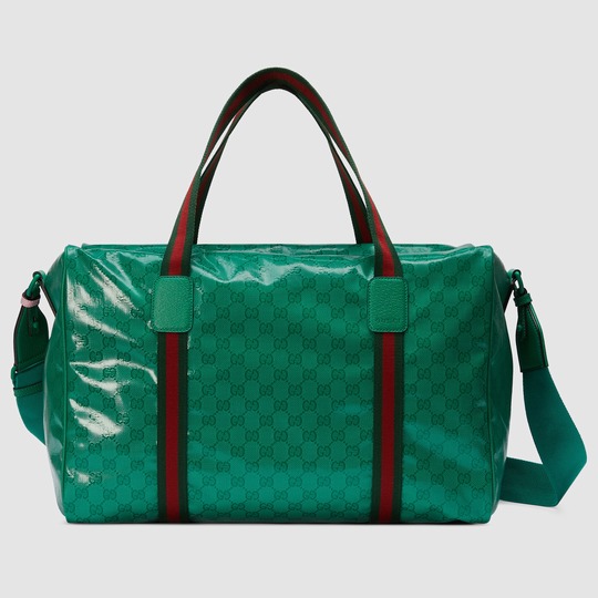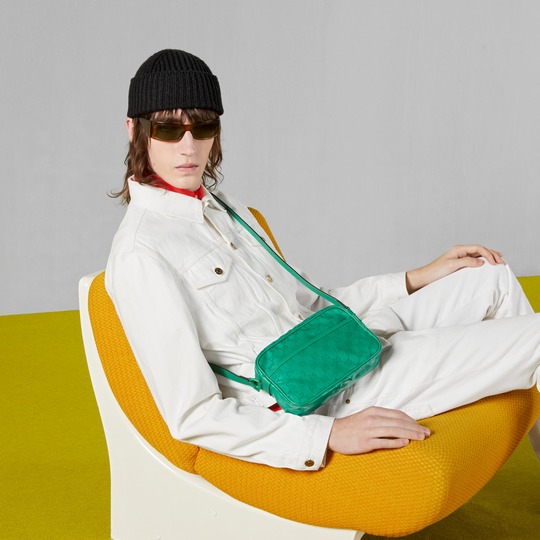 Gucci 本周上市2023秋冬男士新包,以全新推出的「GG水晶帆布」為主要材質,老花帆布表面覆以亮澤涂層,并煥以黑色、粉色、綠色和藍色4種顏色呈現,亮澤表面和防水特性為經典老花注入當代格調。