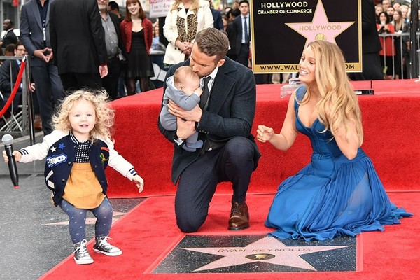 《死侍》男主角小賤賤 Ryan Reynolds 于當地時間 12 月 15 日留名星光大道,攜愛妻 Blake Lively 以及兩個女兒一起出席。Blake Lively 身穿 Atelier Versace,一席藍裙配金發真是美極了。兩個女兒也會萌翻全場,大女兒 James 全程亢奮滿場跑,而小女兒首次公開亮相。溫馨一家,羨煞旁人!