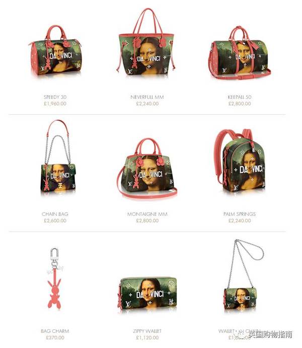 想不想拎著蒙娜麗莎的微笑四處逛逛,這個(gè)月的28號路易威登與藝術(shù)家Jeff Koons合作的新系列就要推出了,除了達(dá)芬奇,還有梵高、魯本斯等藝術(shù)大師的名畫都要出現(xiàn)在Speedy、Keepall和Neverfull的包款上,包括圍巾、鑰匙鏈、錢包、電腦袋等51個(gè)產(chǎn)品。: