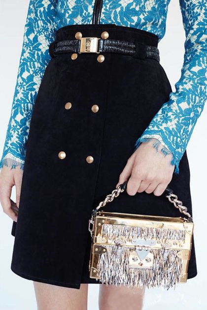 今 年四五月發(fā)生了許多重大的事情,而在時(shí)尚界最另人期待的就是奢侈品牌的新季時(shí)尚盛宴,最誘人眼球的不只是模特與明星的倩影,而是路易威登2015新款時(shí)裝 周剛出爐的一款款美麗包包,全新的LV度假系列掀起起了一股簡約時(shí)尚風(fēng),這是新任設(shè)計(jì)師Nicolas Ghesquire入主LV之后的第二個(gè)系列, 繼N14后將迷你風(fēng)繼續(xù)到底的水桶包,還有模特手上提著的行李箱縮小版復(fù)古風(fēng)手?jǐn)Q包,精美的金屬邊框設(shè)計(jì)與精堪工藝細(xì)節(jié),表現(xiàn)十分華麗的宮廷風(fēng),成為秀場 上最為吸睛的亮點(diǎn)。