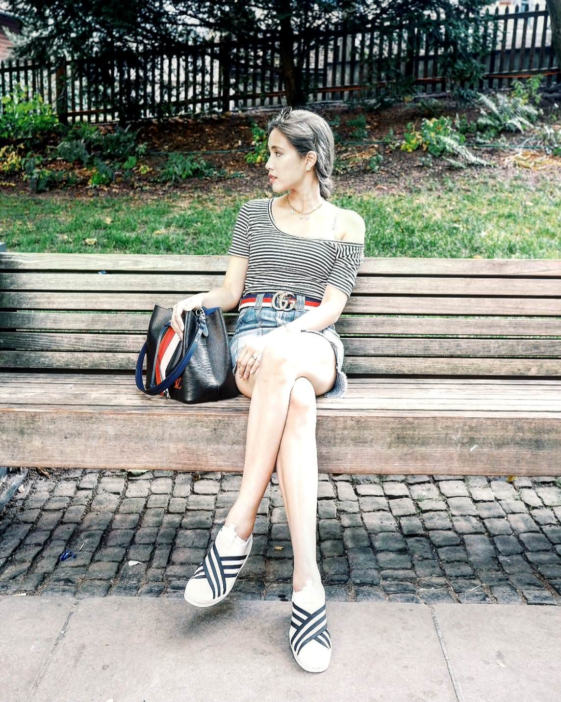 see,褲子又是有條紋,到底有多愛條紋你們應(yīng)該看得出來了。水桶包的好處就是讓平時(shí)打扮比較隨性一點(diǎn)的我很容易駕馭,我想未來這個(gè)包應(yīng)該會是我的日常穿搭重要主角之一吧。