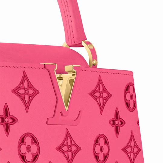 這2款 Capucines 通過細(xì)膩切工在包身打造鏤空 Monogram 圖案,再點(diǎn)綴以布爾登縫線刺繡,顯得精致又具空氣感。