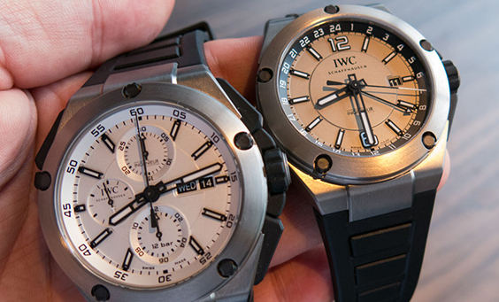 還有一款雙重計時(Double Chrono)鈦金屬腕表,如果說二者略有相似那是肯定得,tm多數品牌整個系列新款都略有相似。還有人說計時款看上去比雙時區款要大,然后一量發現都是45毫米。但雙時區款比計時款要薄個3毫米。再看盤面,左側為鍍銀盤,右側則為米灰盤,相比之下實用度相當,但計時款看上去運動范兒更足。不過多數人還是更喜歡雙時區款,有位編輯的解釋非常浪漫又非常合理:“這樣即便沒和自己愛的人呆在一起,也能知道他/她現在是睡了還是醒著。”