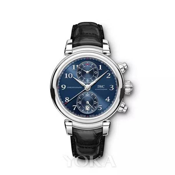 IWC萬國表達文西計時腕表“勞倫斯體育公益基金會”特別版腕表(型號:IW393402),精鋼表殼,直徑42毫米,深藍色表盤搭配黑色Santoni鱷魚皮表帶。自動上鏈計時機芯,具備日期顯示,小時、分鐘與秒鐘的計時功能,飛返功能,防水深達3巴,限量發行1500枚,參考價97,800人民幣。