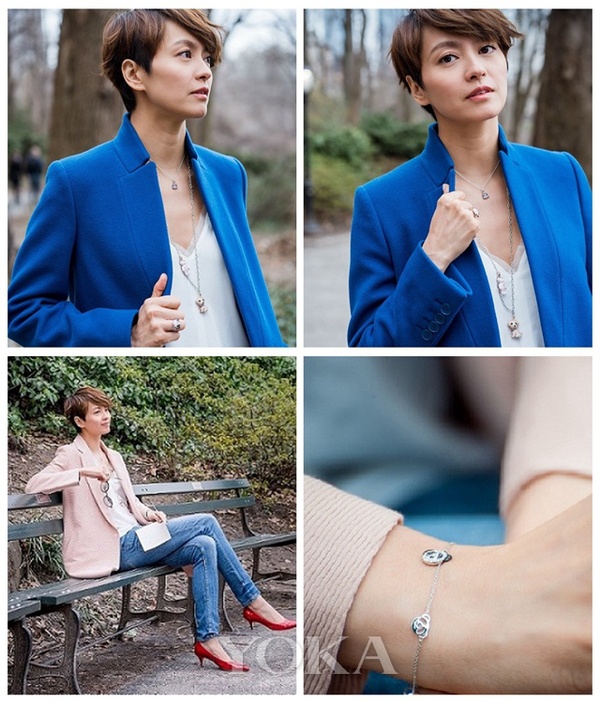 Gigi早上穿上一身休閑服裝,配以品牌Wulu系列黑白瑪瑙長項鏈,無論是搭配可愛的Wang Wang系列、時尚的Petite手鏈,或是極受歡迎的Wulu系列鑲鉆戒指及耳環,皆盡顯Gigi高貴優雅的氣質。