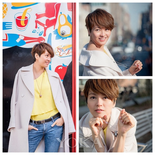Gigi說,Qeelin充滿玩味的設計,最適合午后輕松出游的造型打扮。穿上藍色牛仔褲的Gigi,以一條白金長項鏈掛上Ceramic Bo Bo吊墜和Wang Wang 金毛尋回犬Bella鉆石吊墜;為增加層次感,她更加上一條較短的項鏈,掛上Wang Wang 玩具貴賓犬Sophie 吊墜。