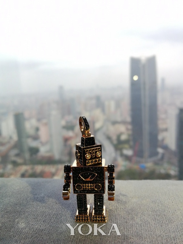 Qeelin Roobot系列18K玫瑰金鑲黑鉆機器人吊墜